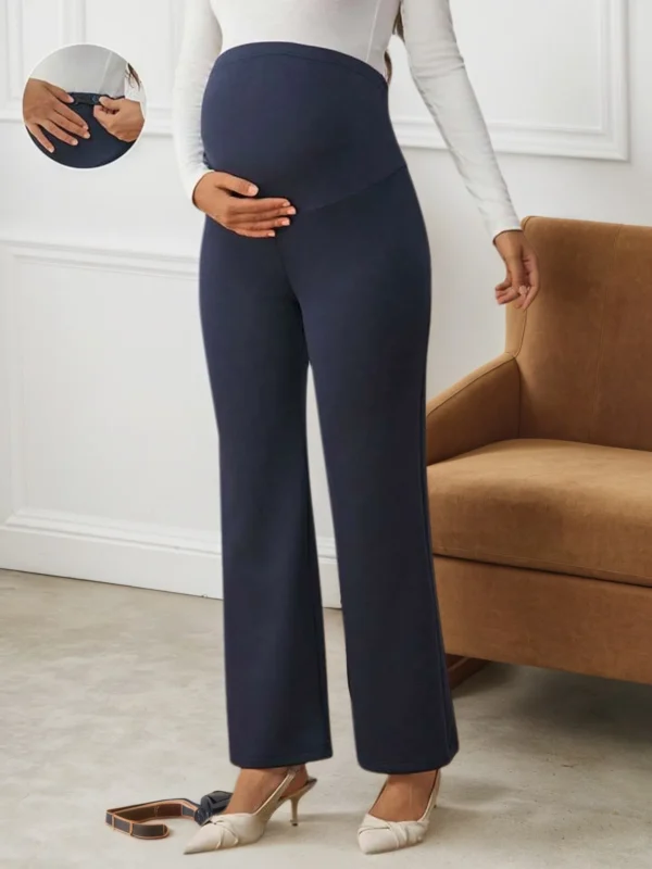 I pantaloni premaman a vita alta con supporto pancia offrono comfort e sostegno durante la gravidanza. Il taglio dritto a