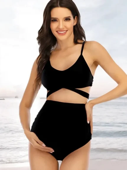 Il costume premaman due pezzi a vita alta per gravidanza offre sostegno e comfort in acqua e in spiaggia. Il