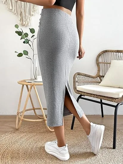 La gonna premaman lunga a vita alta in maglia a coste è pensata per seguire le forme della gravidanza con