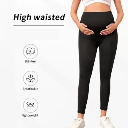 I pantaloni premaman a vita alta con supporto pancia offrono comfort e sostegno durante la gravidanza. Il taglio dritto a