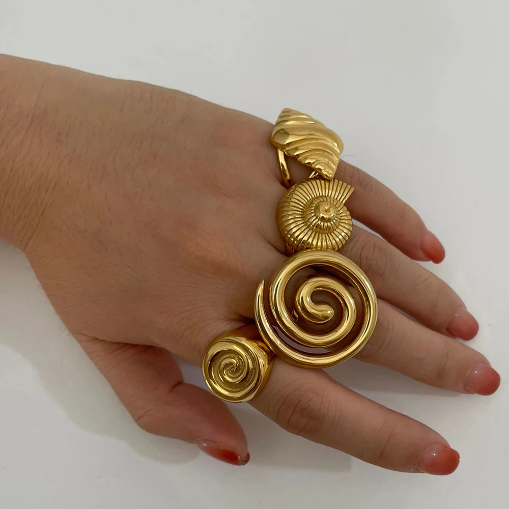 L’anello a guscio di cocco placcato oro 18K è un gioiello estivo dalle linee essenziali, pensato per essere indossato ogni giorno. La superficie lucida e il design massiccio richiamano le conchiglie marine, dando un tocco naturale e ricercato alle tue mani.