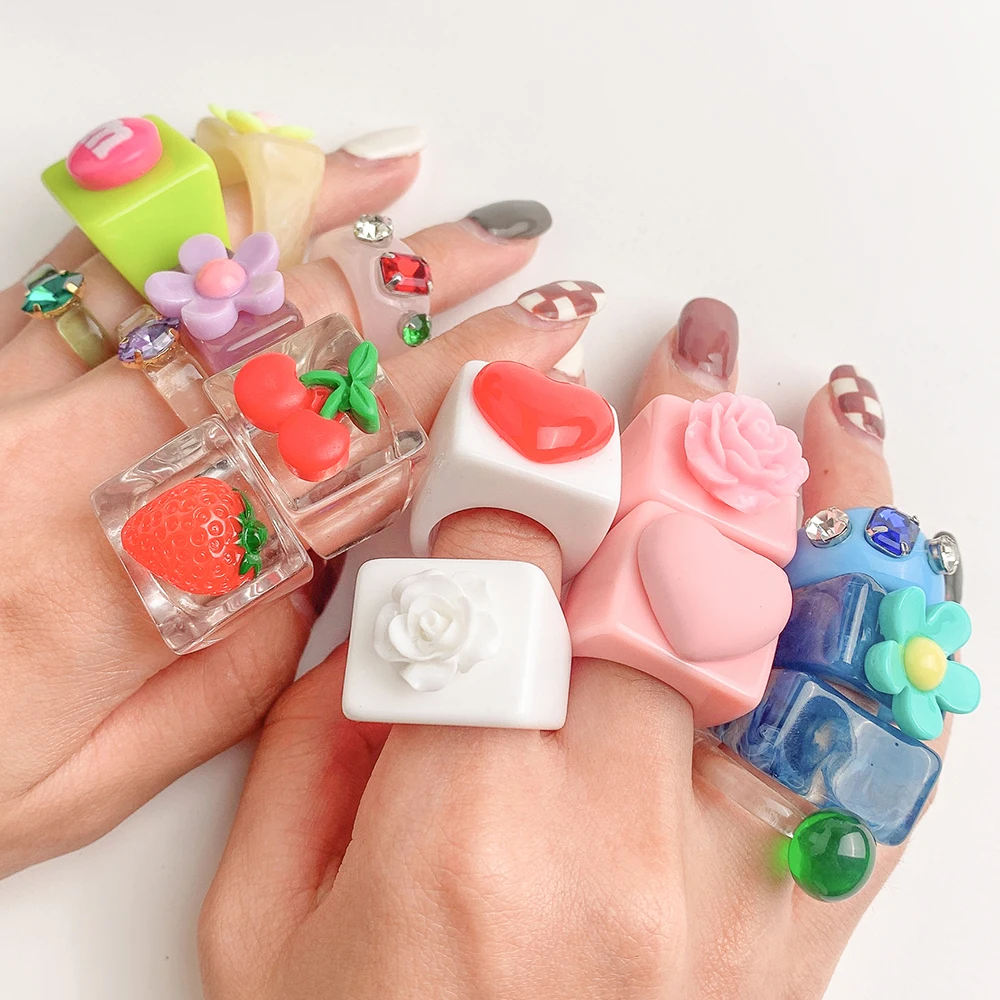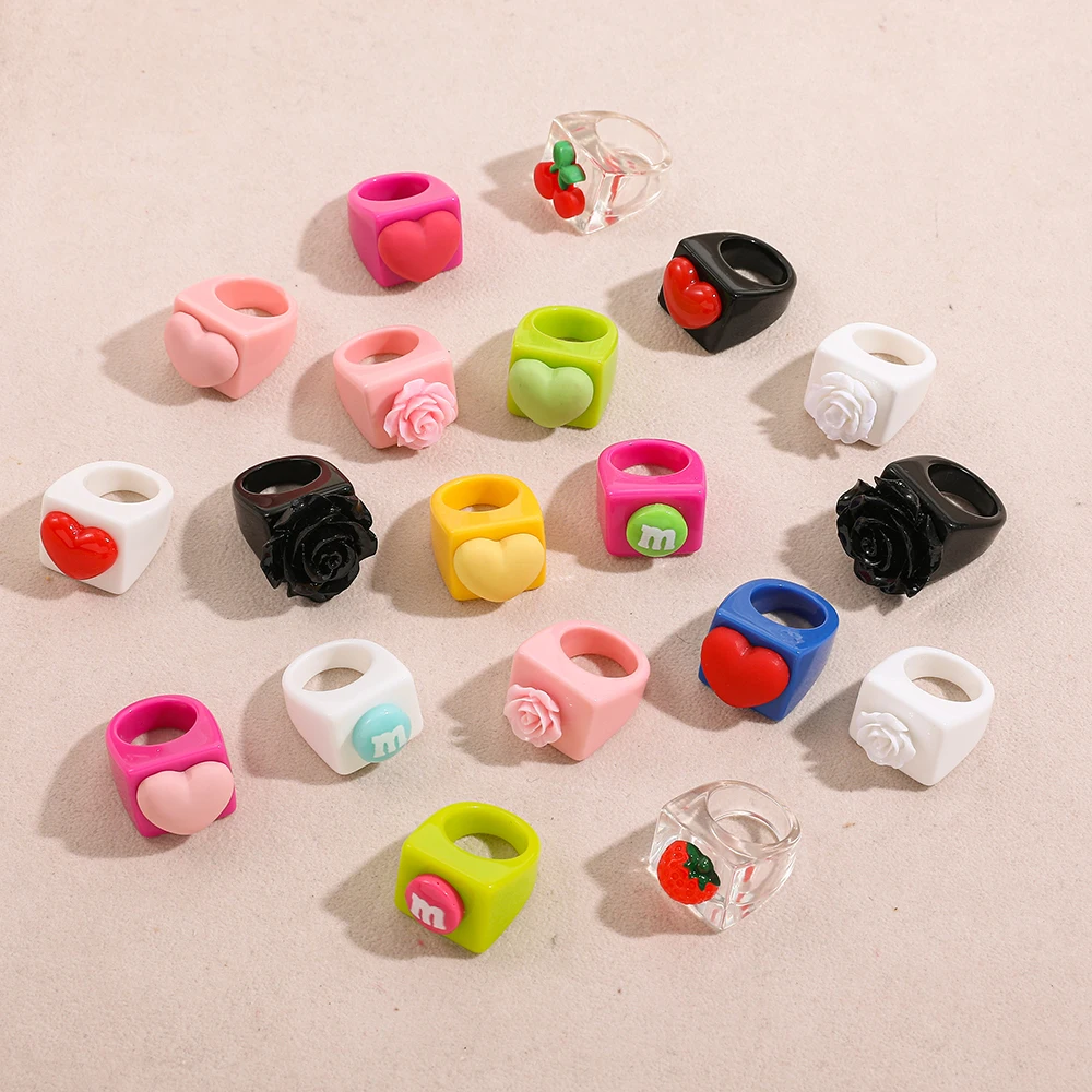 L’anello donna in resina acrilica multicolore è un accessorio leggero e originale, perfetto per dare un tocco divertente ai tuoi look quotidiani o alle feste. Il design geometrico con perline a forma di frutta e cuori crea un effetto unico e giocoso.