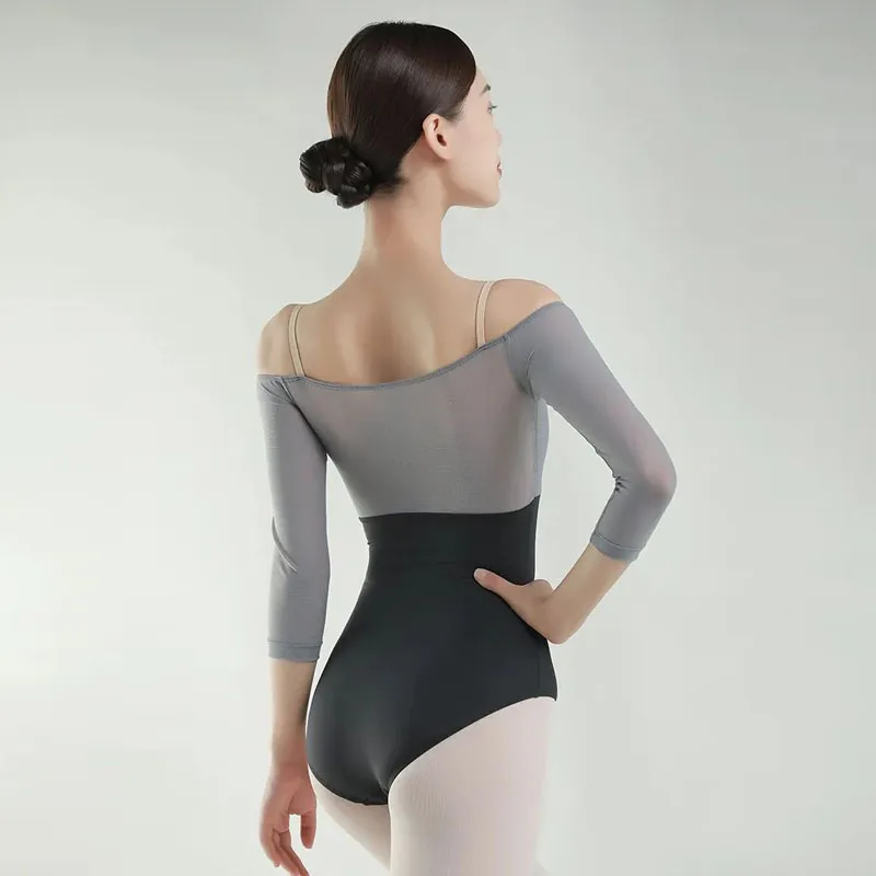 Il body da balletto donna con spalle scoperte è pensato per lezioni, spettacoli e danza moderna. Il design aderente con maniche a tre quarti e inserti in rete offre libertà di movimento e un tocco elegante.