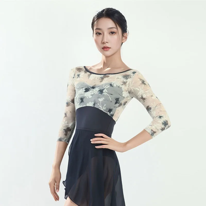Il body da balletto donna in rete stampata con maniche a tre quarti è ideale per danza classica, ginnastica e yoga. Offre sostegno e libertà di movimento, con tessuto elasticizzato e traspirante.