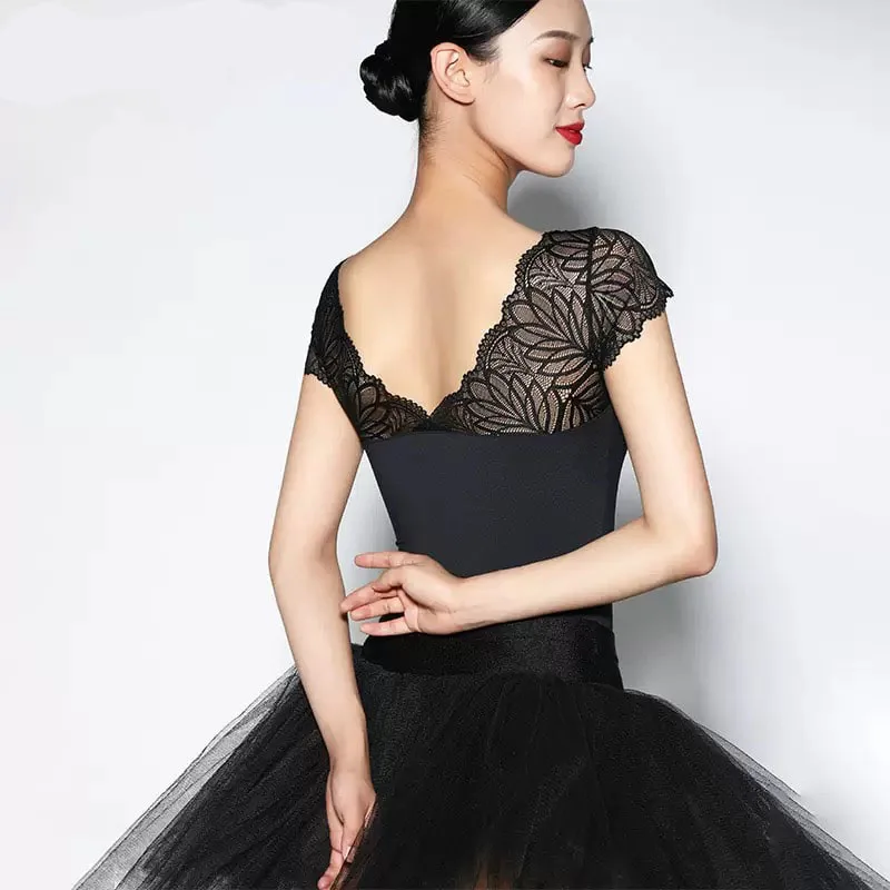 Body da balletto donna nero con pizzo e scollo a V