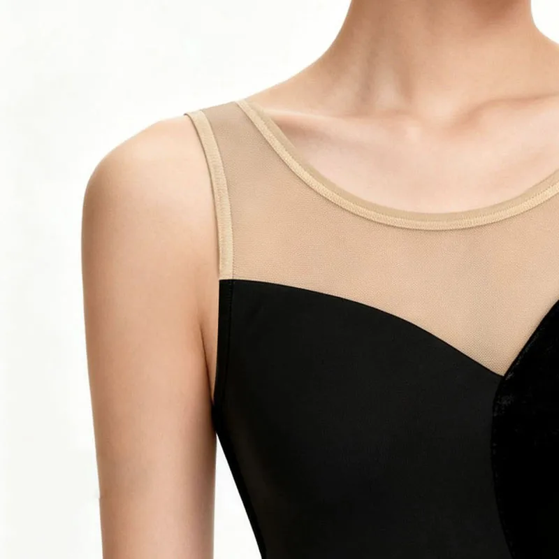 Il body danza velluto con spalline regolabili è pensato per ballerine di ogni età, ideale per lezioni, saggi e spettacoli.