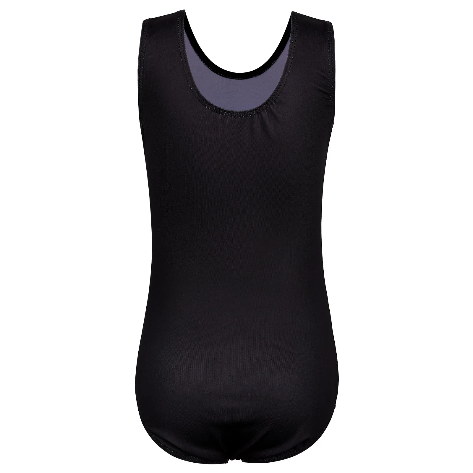Il body ginnastica artistica bambina nero senza maniche è pensato per allenamenti, danza e spettacoli. Il tessuto elasticizzato segue i