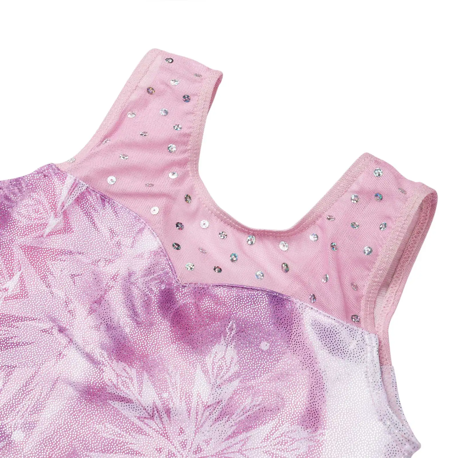 Il body ginnastica bambina scintillante è un monopezzo comodo e aderente, ideale per danza, pattinaggio e attività sportive. – Tessuto