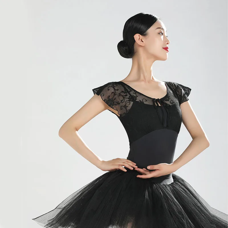 Il body danza donna manica corta con ricami eleganti è pensato per lezioni di danza, ginnastica e spettacoli. Il tessuto
