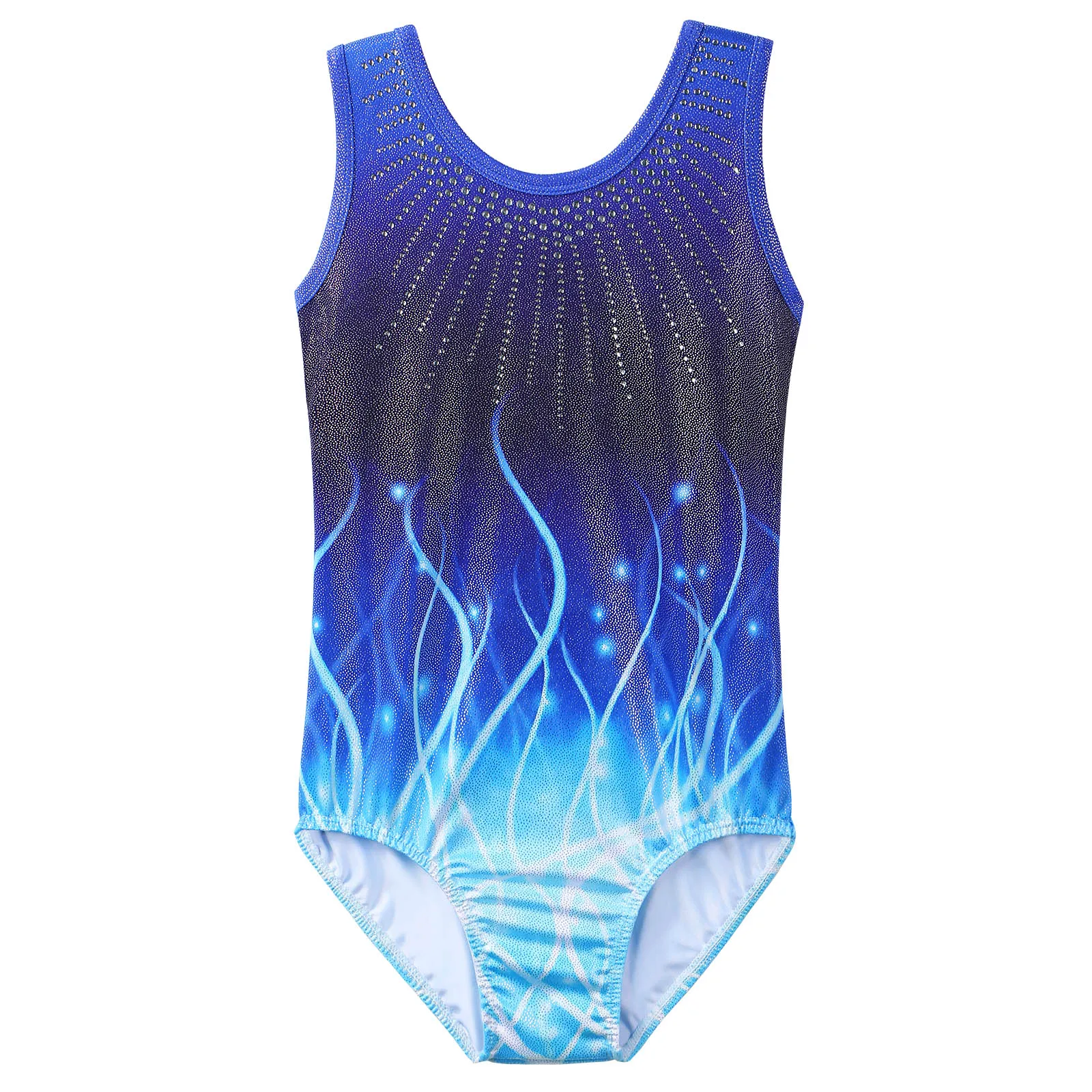 Il body ginnastica bambina sfumato con strass è pensato per allenamenti e spettacoli di danza e ginnastica artistica. Il tessuto