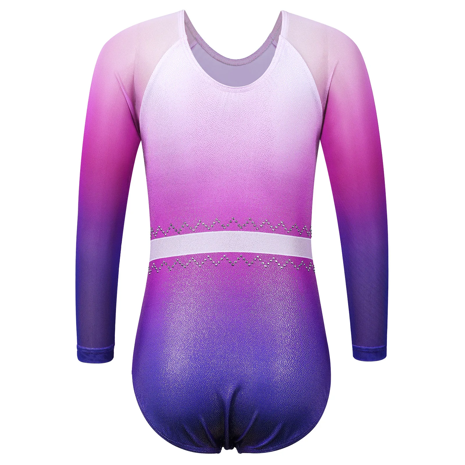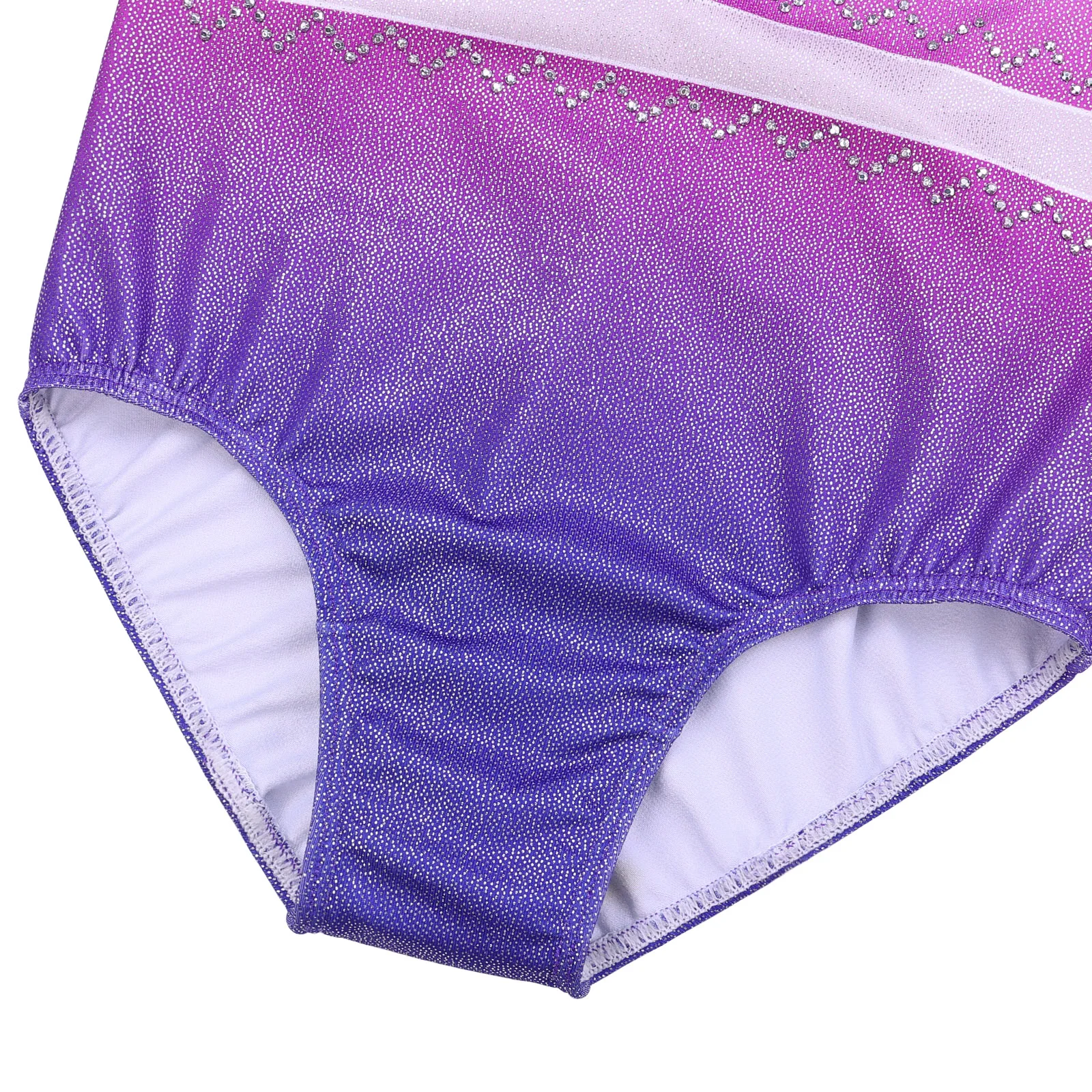Il body ginnastica artistica bambina con strass è pensato per allenamenti e piccole esibizioni. Il tessuto elasticizzato assicura libertà di movimento, mentre il design a gradiente con strass aggiunge un tocco elegante sul palco e in palestra.