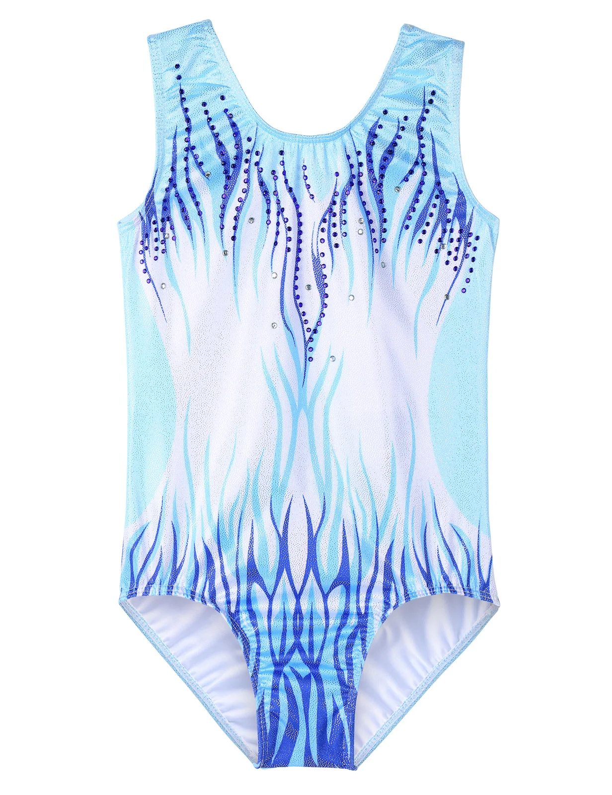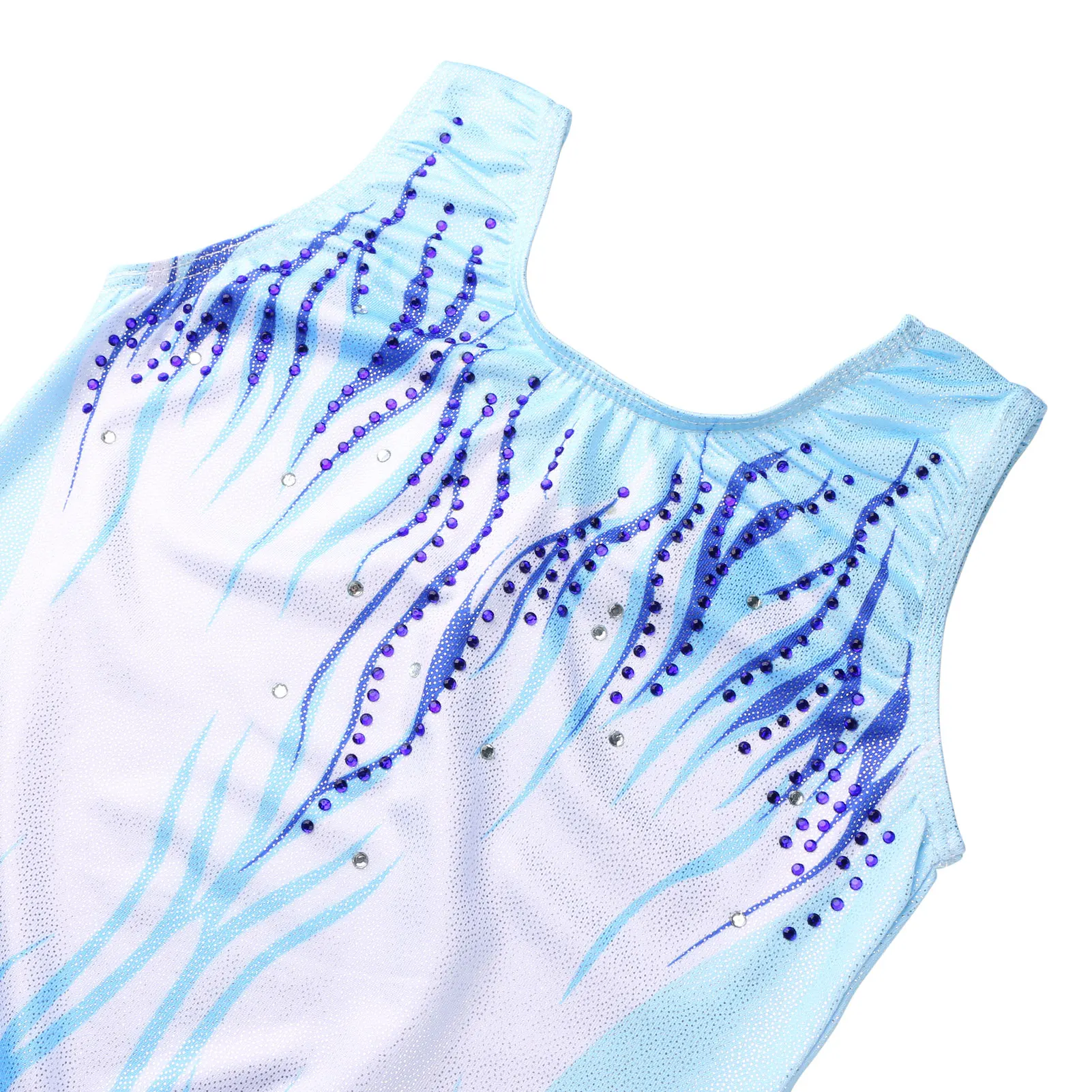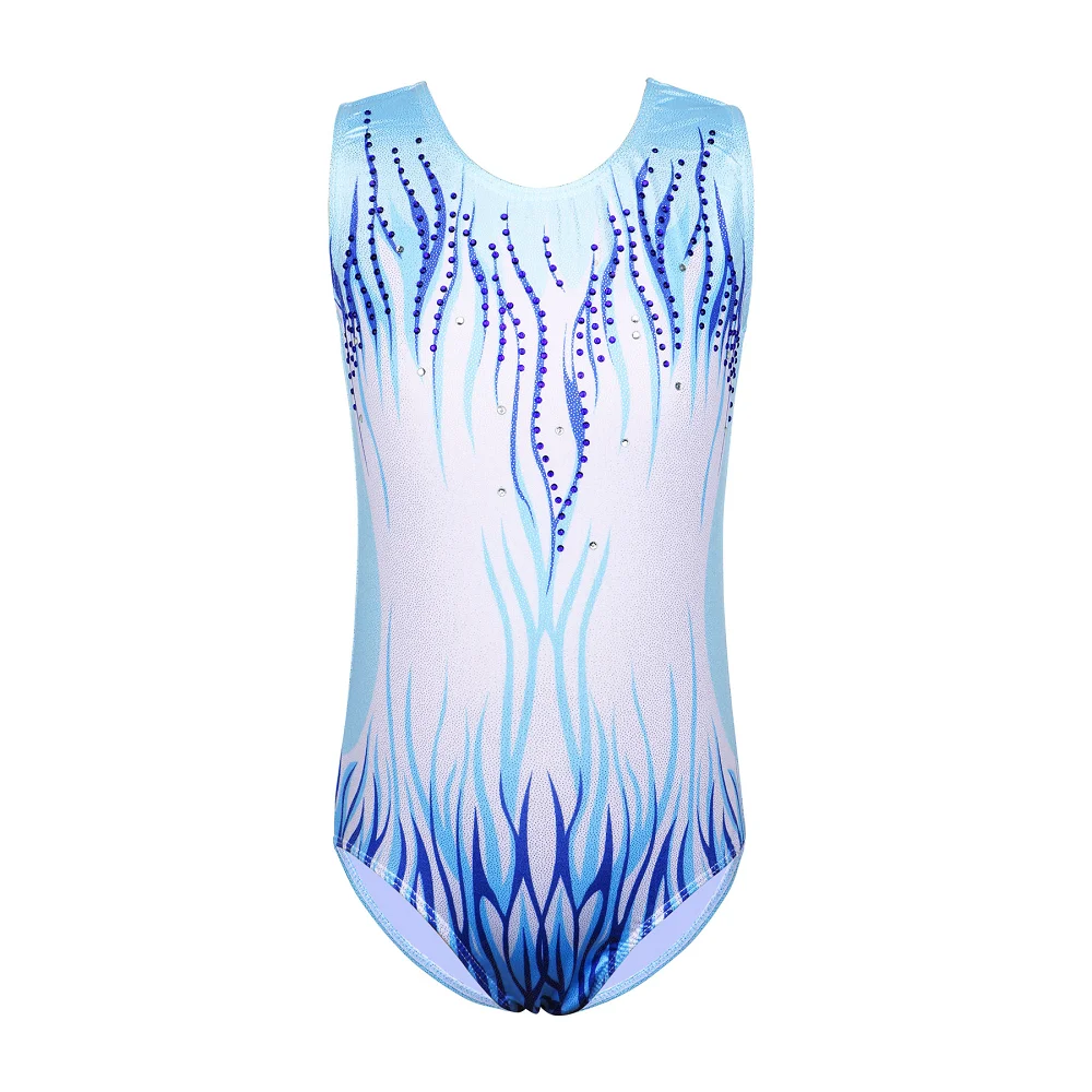 Il body ginnastica bambina blu sfumato è ideale per allenamenti, danza e attività sportive. – Tessuto elasticizzato e morbido per
