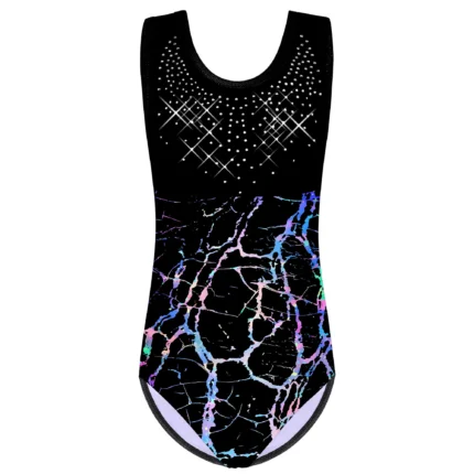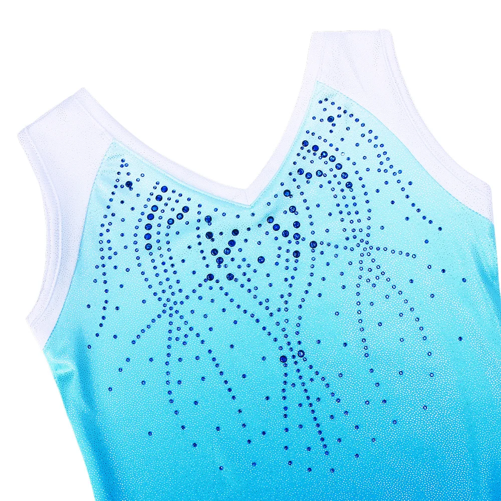 Il body danza ragazza sfumato con paillettes senza maniche è pensato per lezioni e saggi di danza e ginnastica. Il