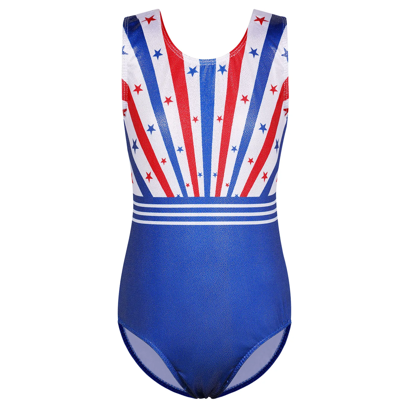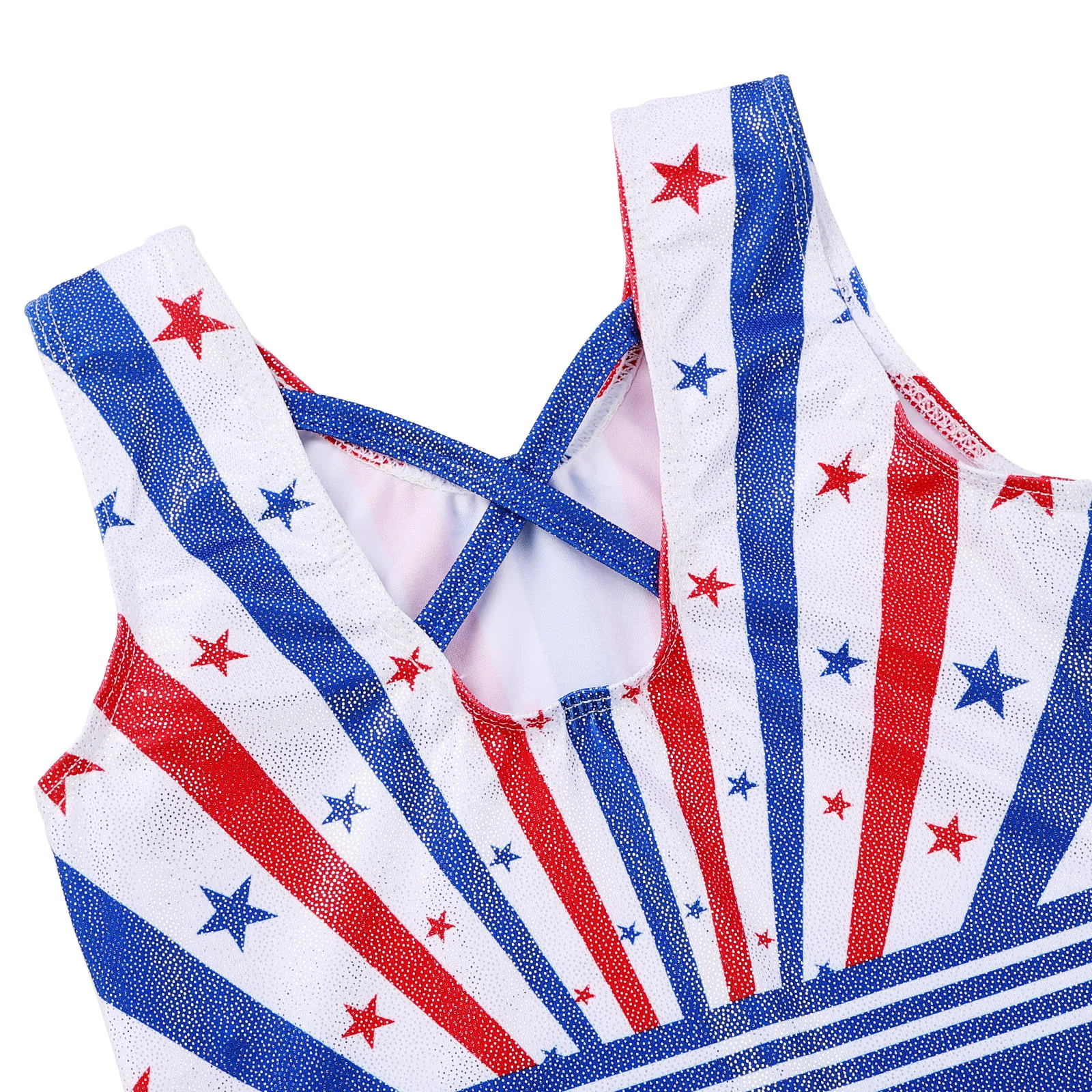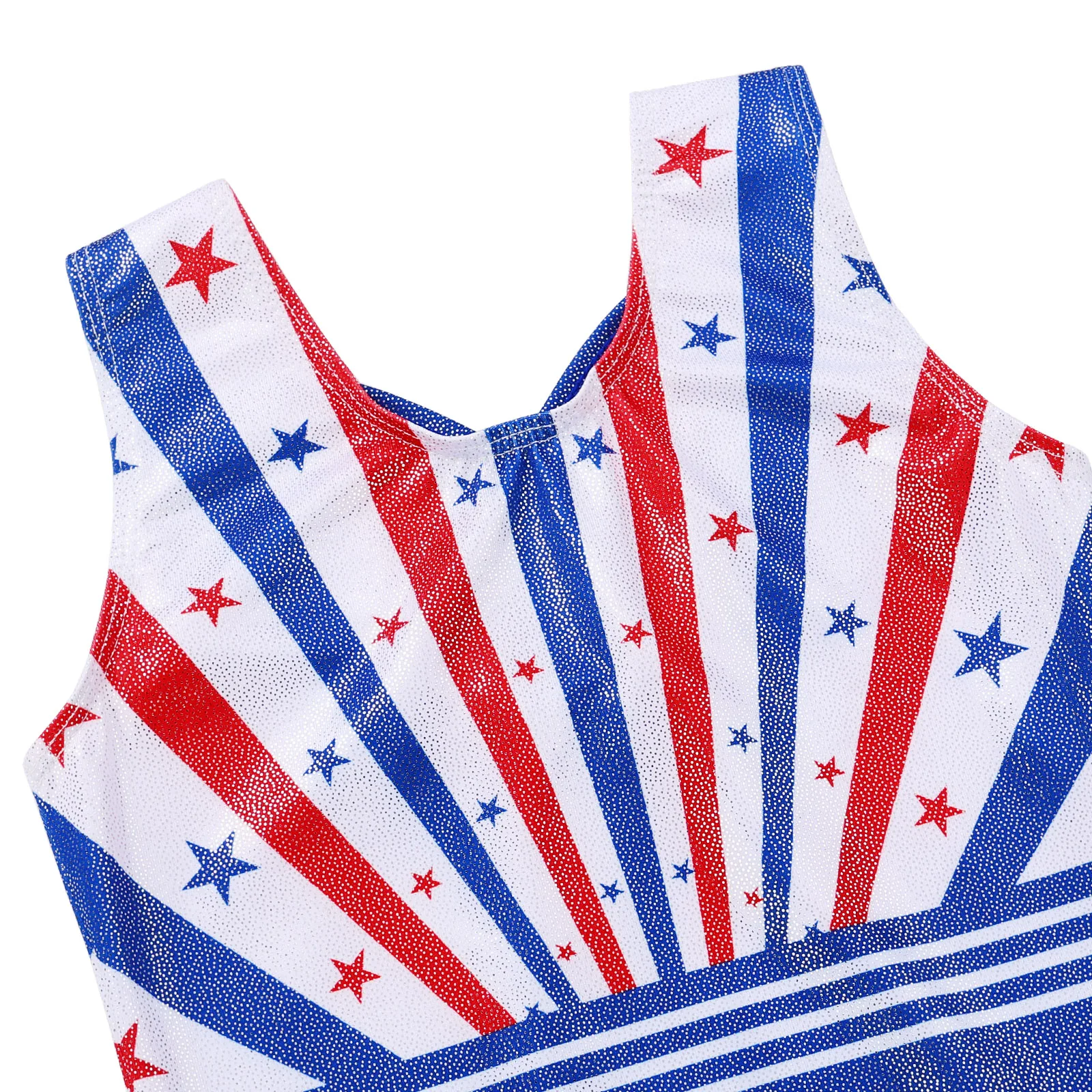 Il body ginnastica bambina senza maniche con stelle e righe è pensato per allenamenti e spettacoli di danza o ginnastica. Il tessuto elasticizzato segue i movimenti e offre comfort durante l’attività.