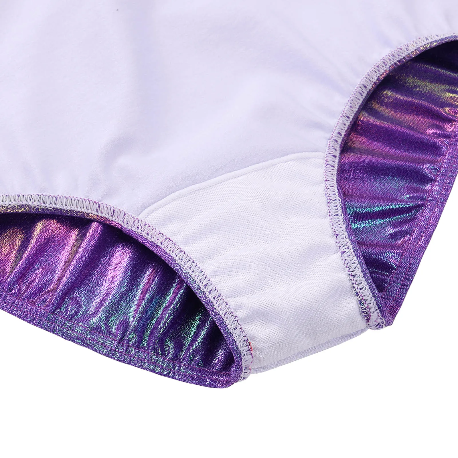 Il body danza bambina viola senza maniche è ideale per lezioni di balletto, ginnastica e spettacoli. Il tessuto elasticizzato segue