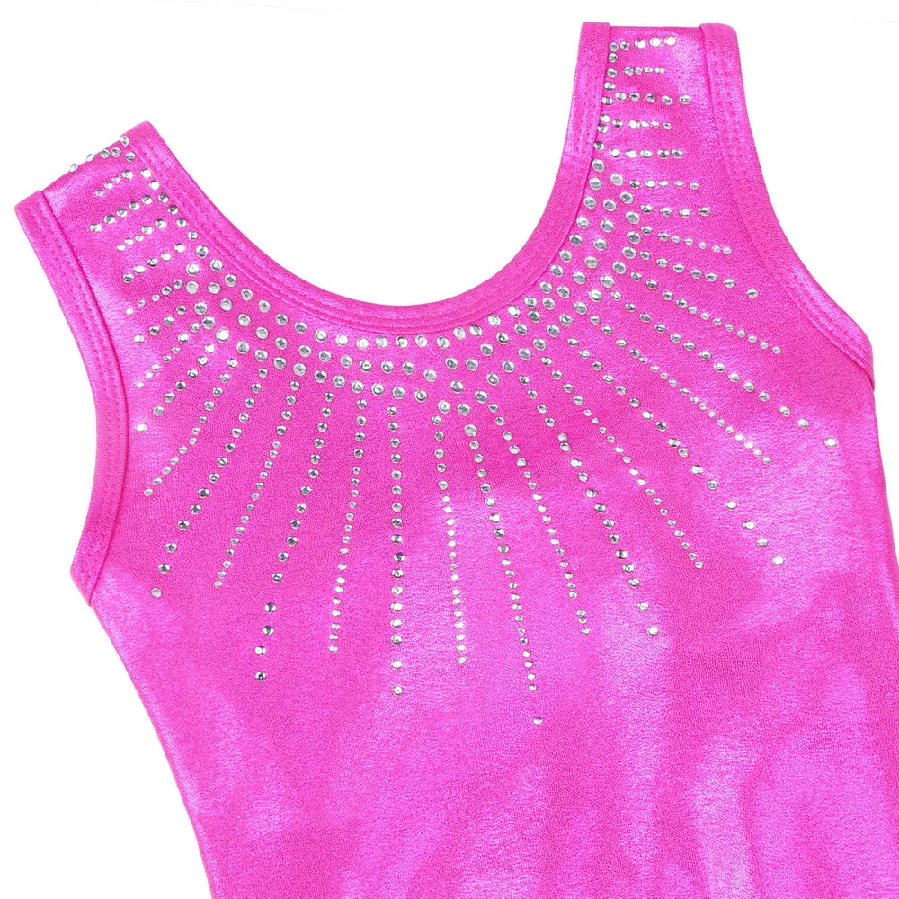Body ginnastica ragazza senza maniche con strass hot pink