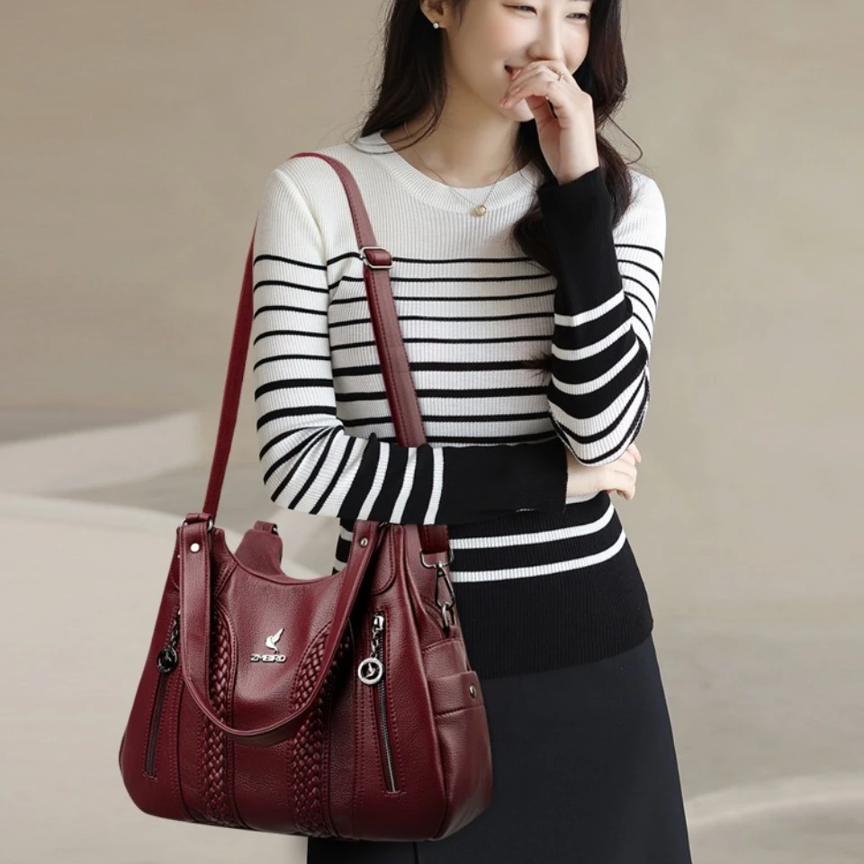 La borsa a tracolla donna grande capacità in pelle morbida è ideale per l’uso quotidiano, al lavoro e nel tempo libero.
