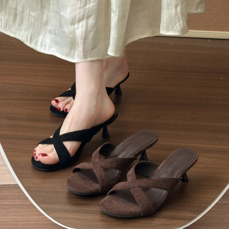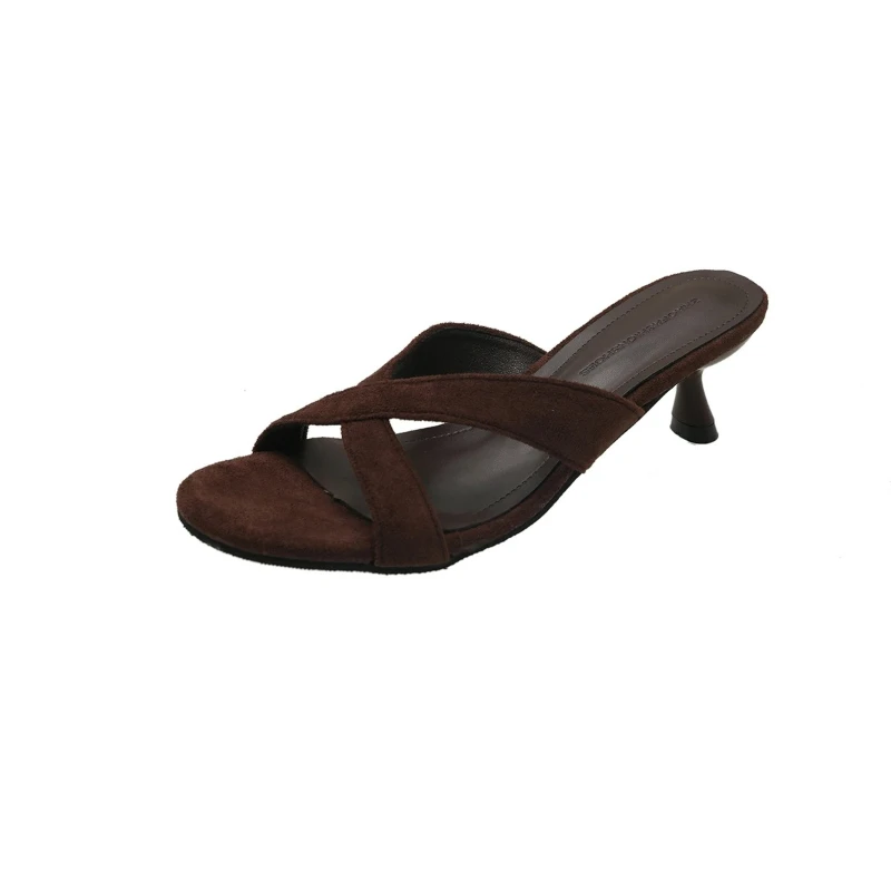 Le ciabatte estive vintage da donna con tacco largo sono sandali aperti eleganti e comodi, ideali per il tempo libero o per occasioni informali.