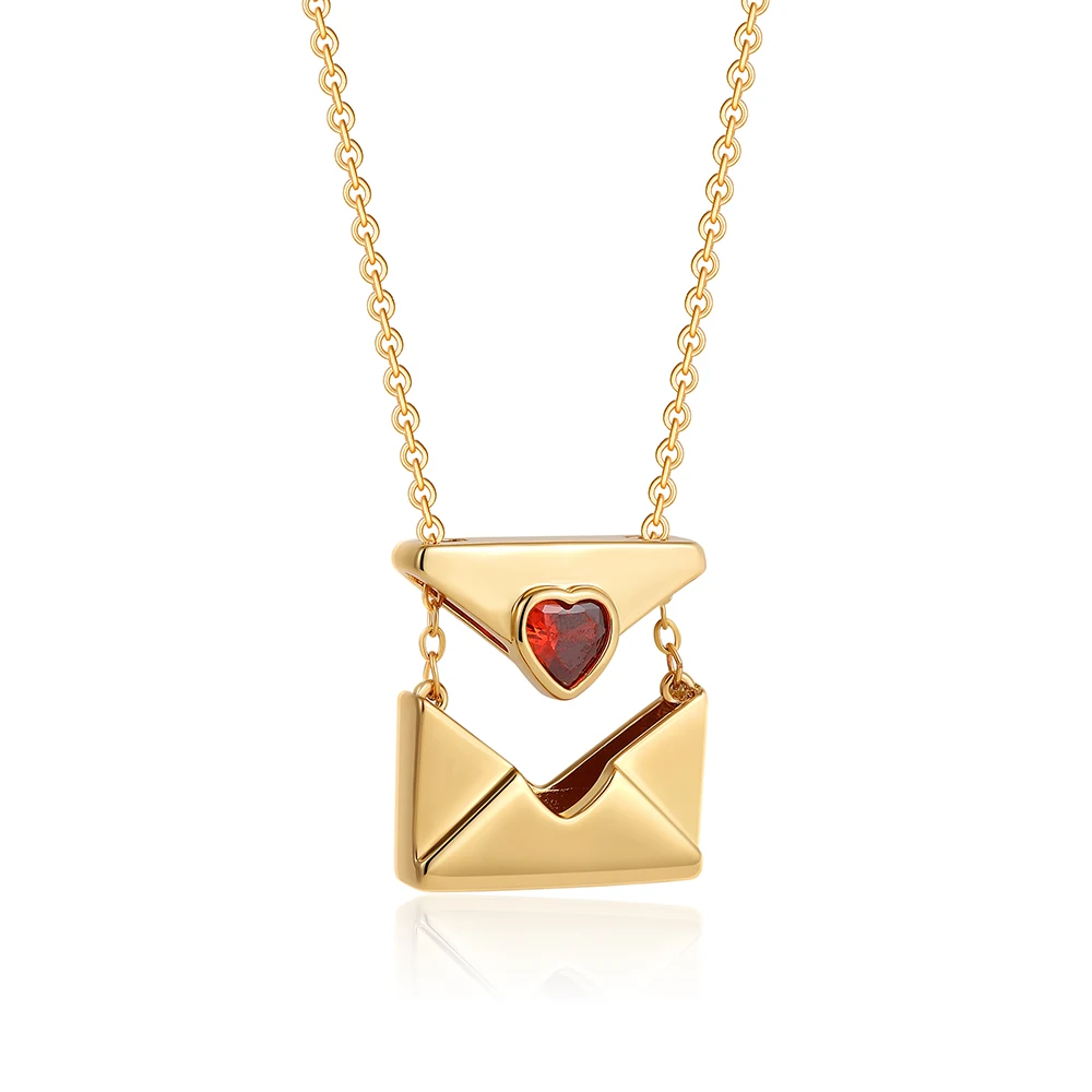 La collana busta “Ti amo” è un gioiello romantico in acciaio inossidabile con piccolo zircone rosso, ideale come regalo speciale.