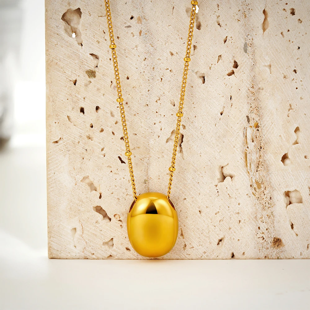 La collana dorata in acciaio con ciondolo a perline è un accessorio semplice e versatile, ideale per l’uso quotidiano. Il design minimal la rende facile da abbinare a diversi look, dal casual all’elegante.
