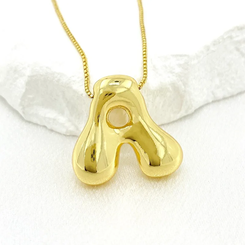 La collana iniziale donna placcata oro 18K è un gioiello elegante con ciondolo a lettera in stile bubble. Ideale per aggiungere un tocco personale al tuo look quotidiano o come regalo di compleanno.