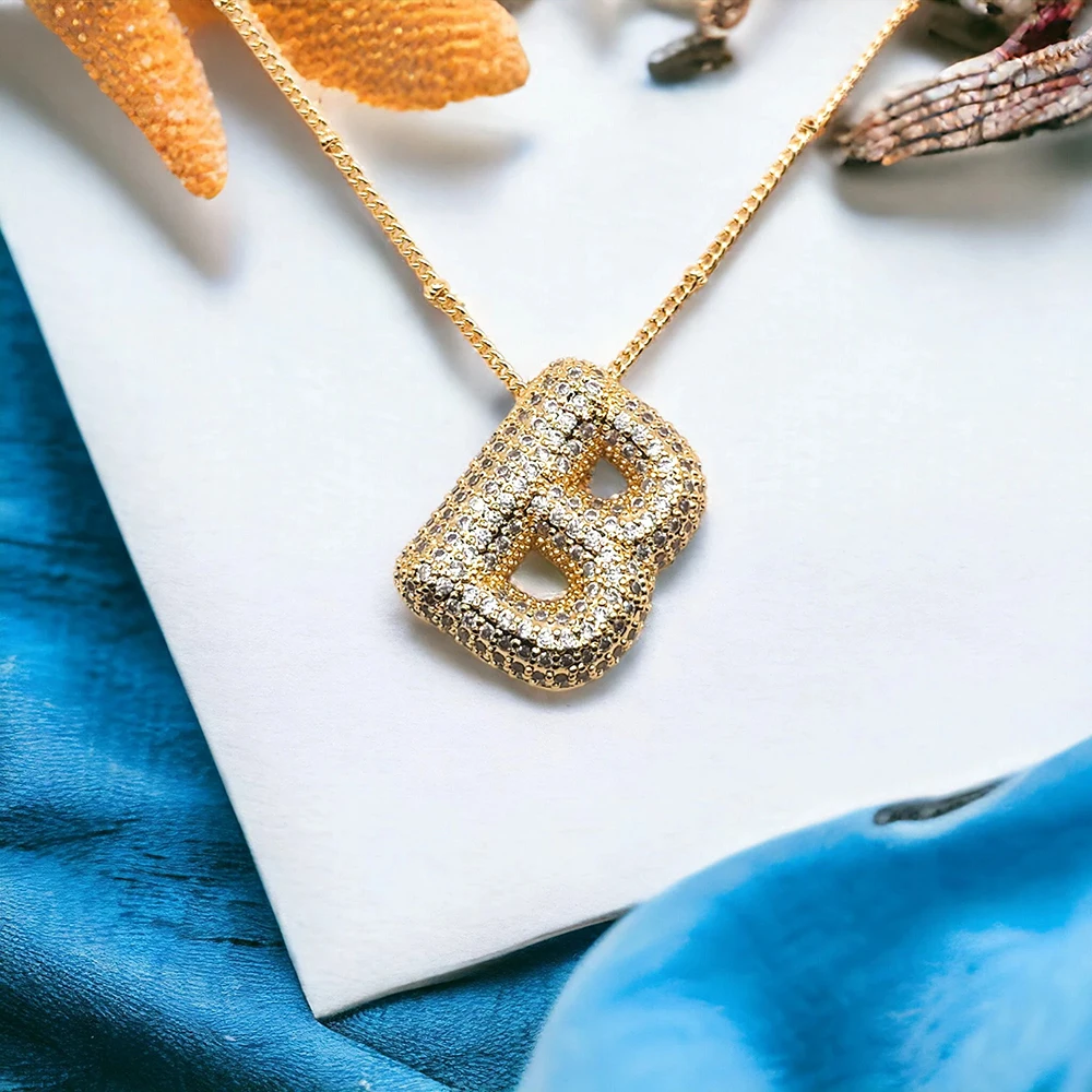 La collana iniziale lettera a bolle con zirconi è un gioiello elegante con ciondolo a forma di lettera, placcato oro 18 carati. Ideale per personalizzare il tuo stile o come regalo significativo.