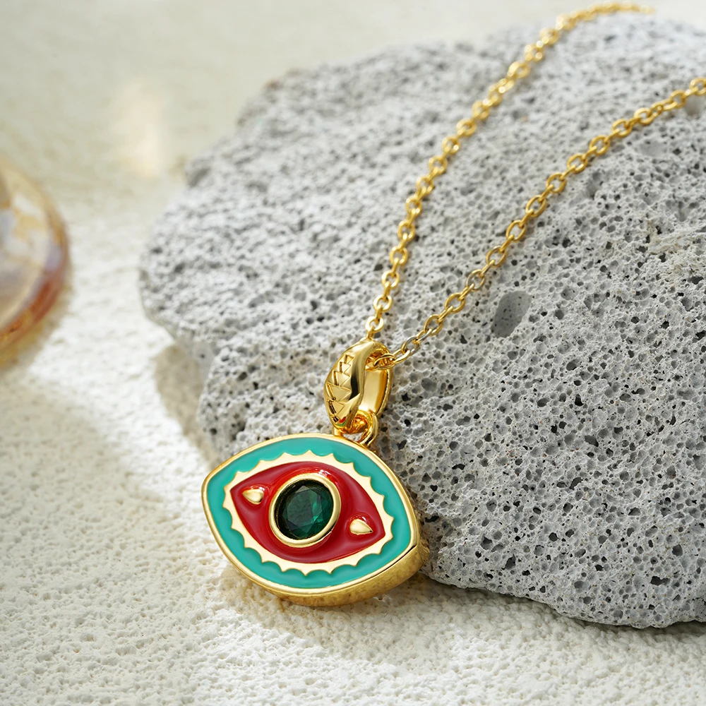 Collana malocchio smaltato con ciondolo occhi di cristallo