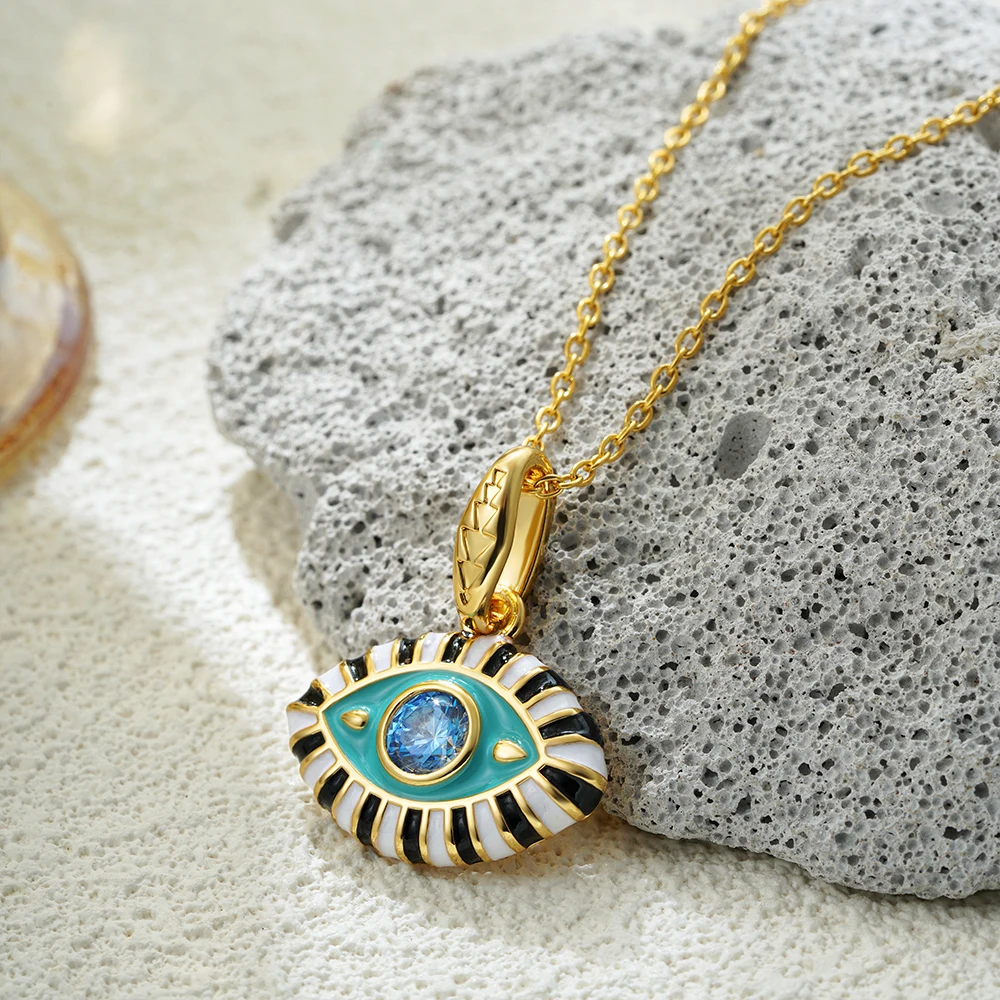 La collana malocchio smaltato con ciondolo occhi di cristallo è un girocollo ispirato alla tradizione turca, pensato per chi ama i dettagli simbolici.