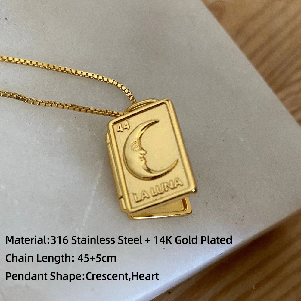 La collana medaglione cuore e luna a 2 strati è un gioiello in acciaio inox pensato per custodire una piccola foto o un ricordo speciale.
