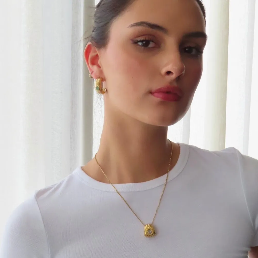 La collana pendente geometrica vintage con zirconi è un gioiello in acciaio inossidabile dorato, ideale per aggiungere un tocco elegante ai tuoi look quotidiani o serali.