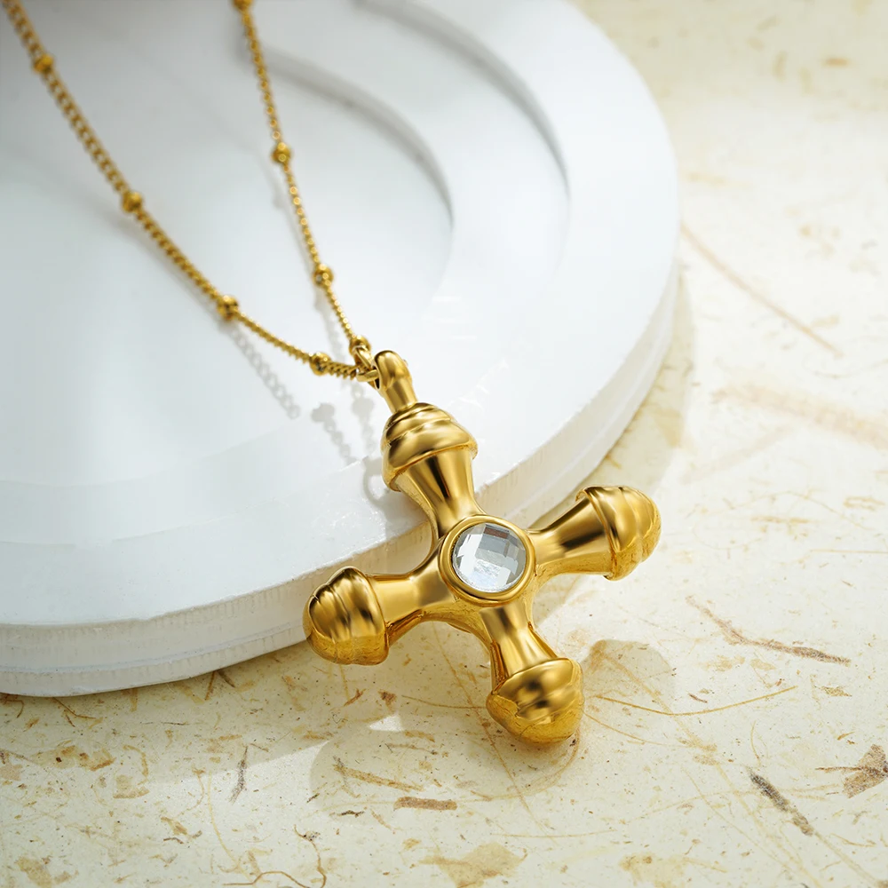 Collana unisex con croce spessa in acciaio inox oro 18K