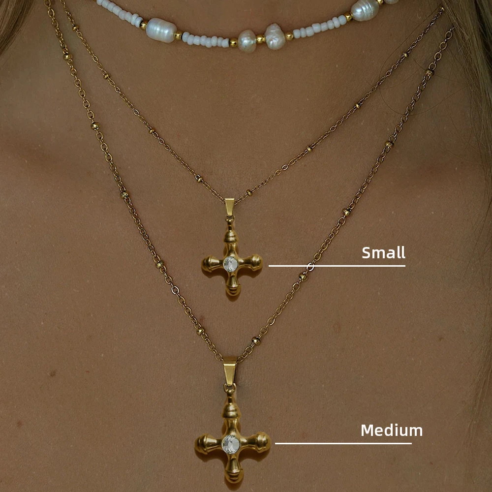 – Ciondolo a croce dal profilo spesso, deciso e ben visibile