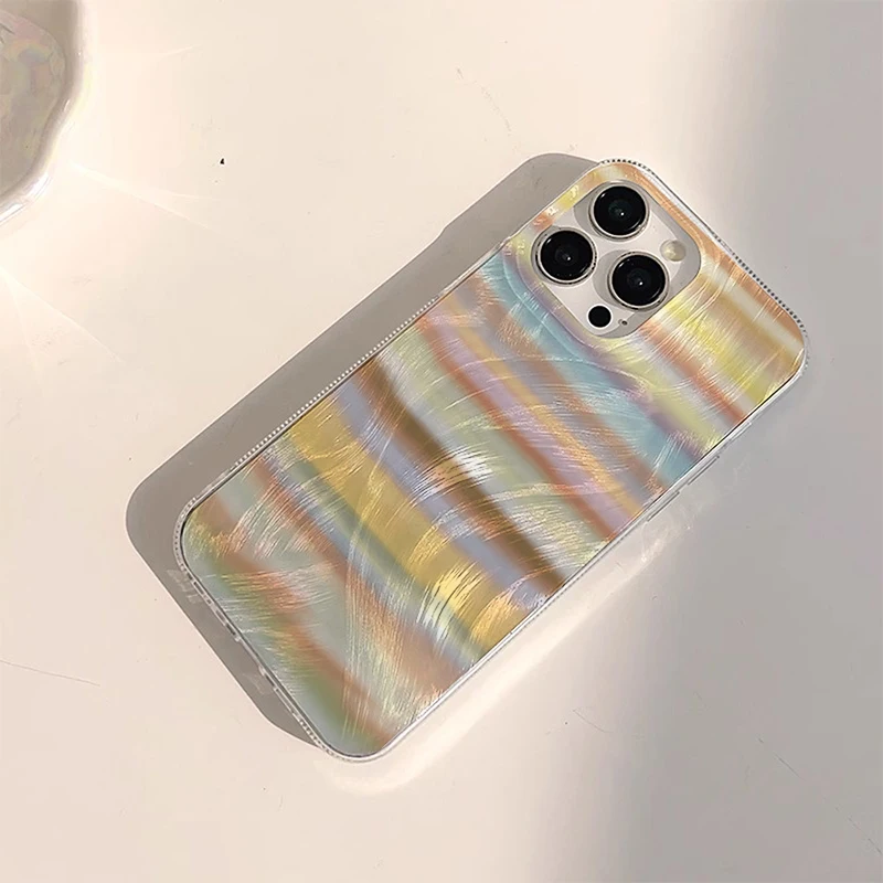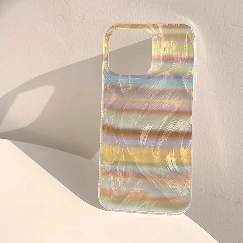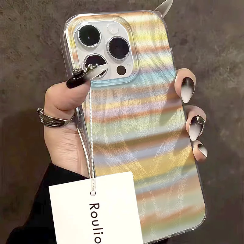La cover iPhone arcobaleno minimal con piuma decorativa protegge il telefono da graffi e urti con uno stile semplice e colorato.