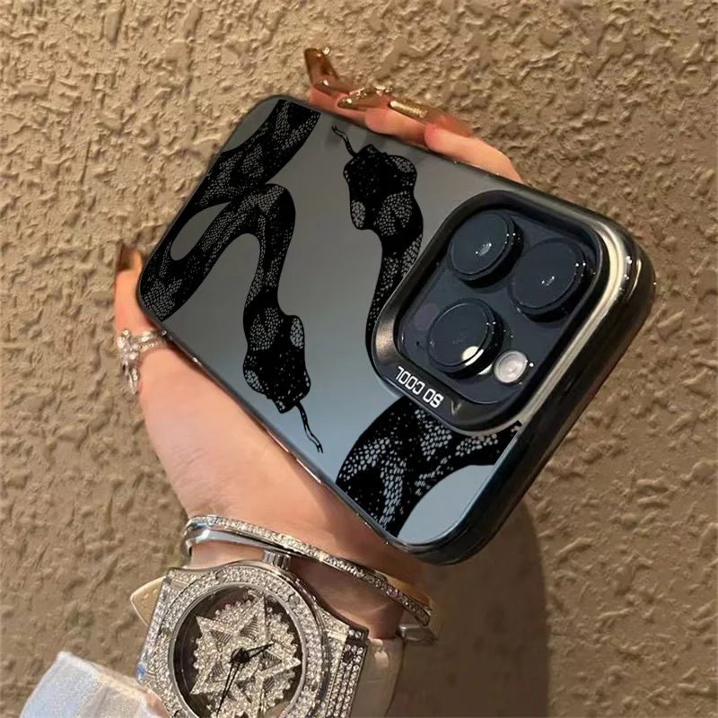 La cover iPhone serpente nero antiurto protegge il telefono da urti, graffi e cadute. Il design effetto pelle di serpente dona uno stile elegante e deciso.