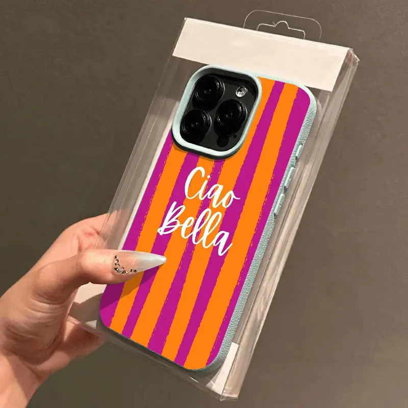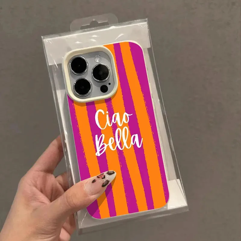 La custodia iPhone a righe arancioni protegge lo smartphone con un design minimal e sottile. Realizzata in materiale morbido, assorbe gli urti e riduce il rischio di graffi.