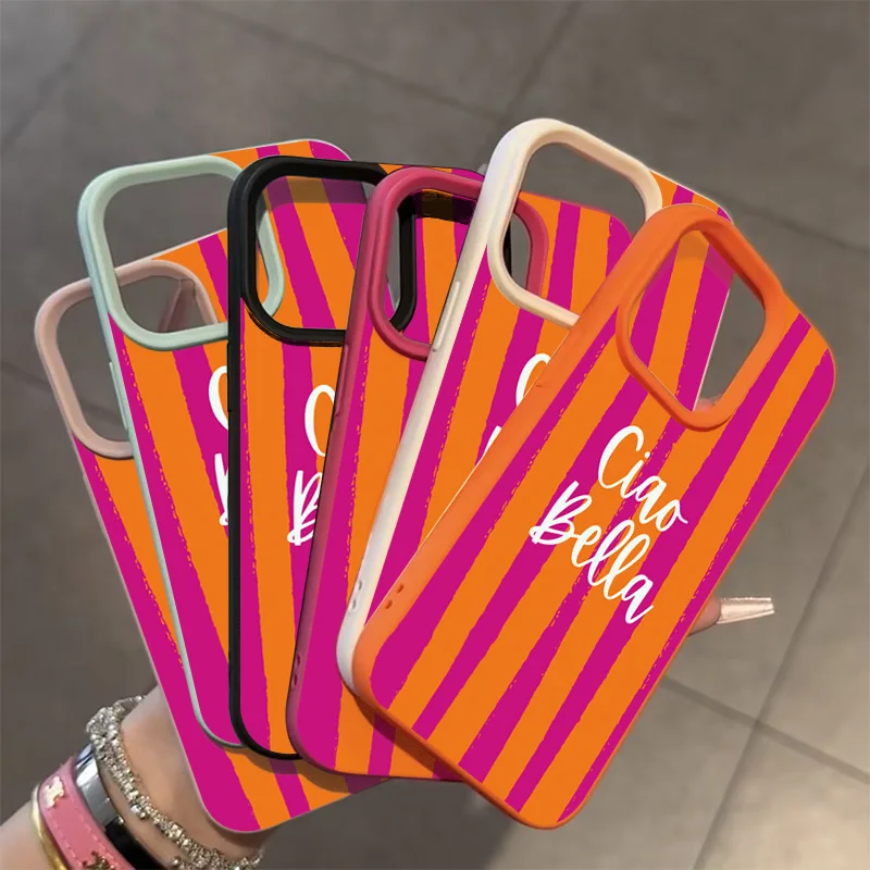 Custodia iPhone a righe arancioni, morbida e antiurto