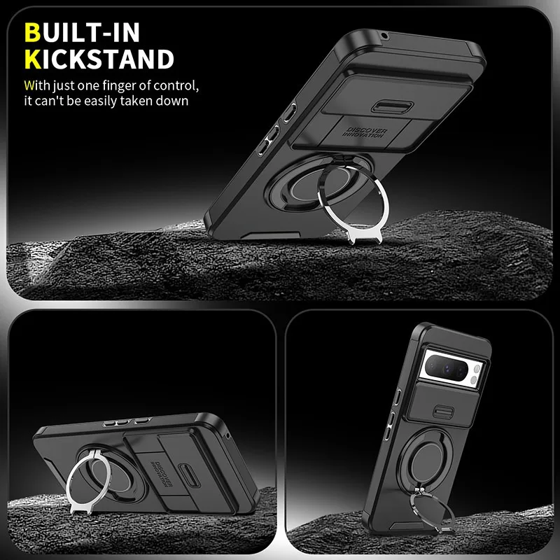 La custodia magnetica ibrida antiurto per Google Pixel protegge lo smartphone da urti e graffi, offrendo al tempo stesso un supporto pratico. Il doppio strato migliora l’assorbimento degli impatti, mentre il bordo rialzato difende schermo e fotocamera. Il copri-obiettivo scorrevole salvaguarda la privacy e aggiunge una protezione extra alle lenti. L’anello in metallo integrato funziona come stand e si aggancia ai supporti magnetici in auto. Consigliata per chi usa spesso il telefono fuori casa o in viaggio.