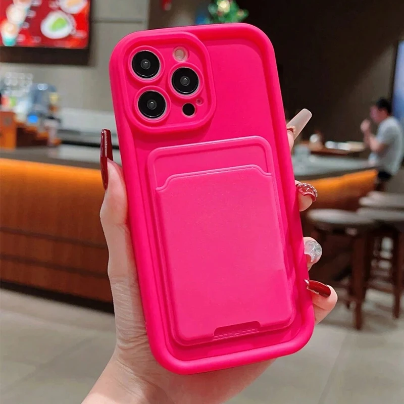 La custodia portafoglio in silicone antiurto per iPhone protegge il telefono e permette di tenere carte essenziali sempre a portata di mano.