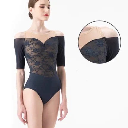 Il body da ballo donna in pizzo è pensato per danza, ginnastica e spettacoli. Offre comfort e libertà di movimento,