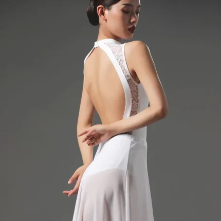 Il body danza in pizzo senza schiena con scollo quadrato è pensato per lezioni, prove e spettacoli di danza. Il