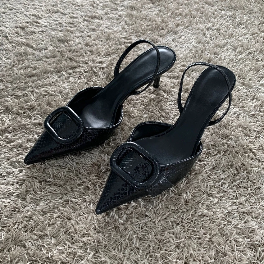 Le décolleté nere da donna con tacco alto e cinturino alla caviglia sono scarpe eleganti ideali per ufficio, lavoro e occasioni formali.
