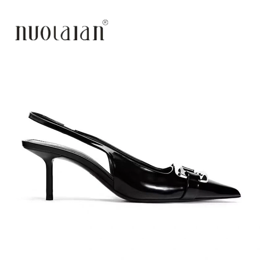 Le décolleté slingback nere in pelle sono scarpe eleganti con punta affusolata e tacco a stiletto, ideali per cerimonie, serate e occasioni speciali.