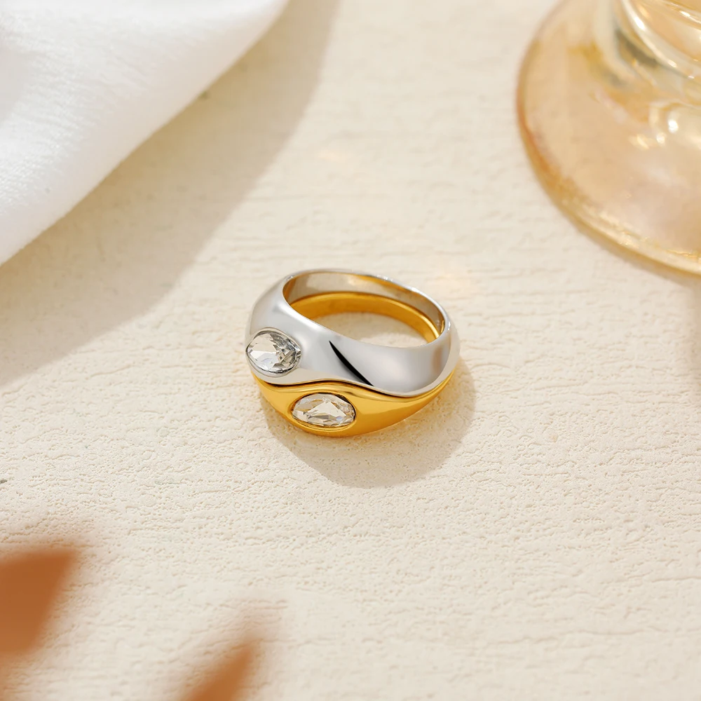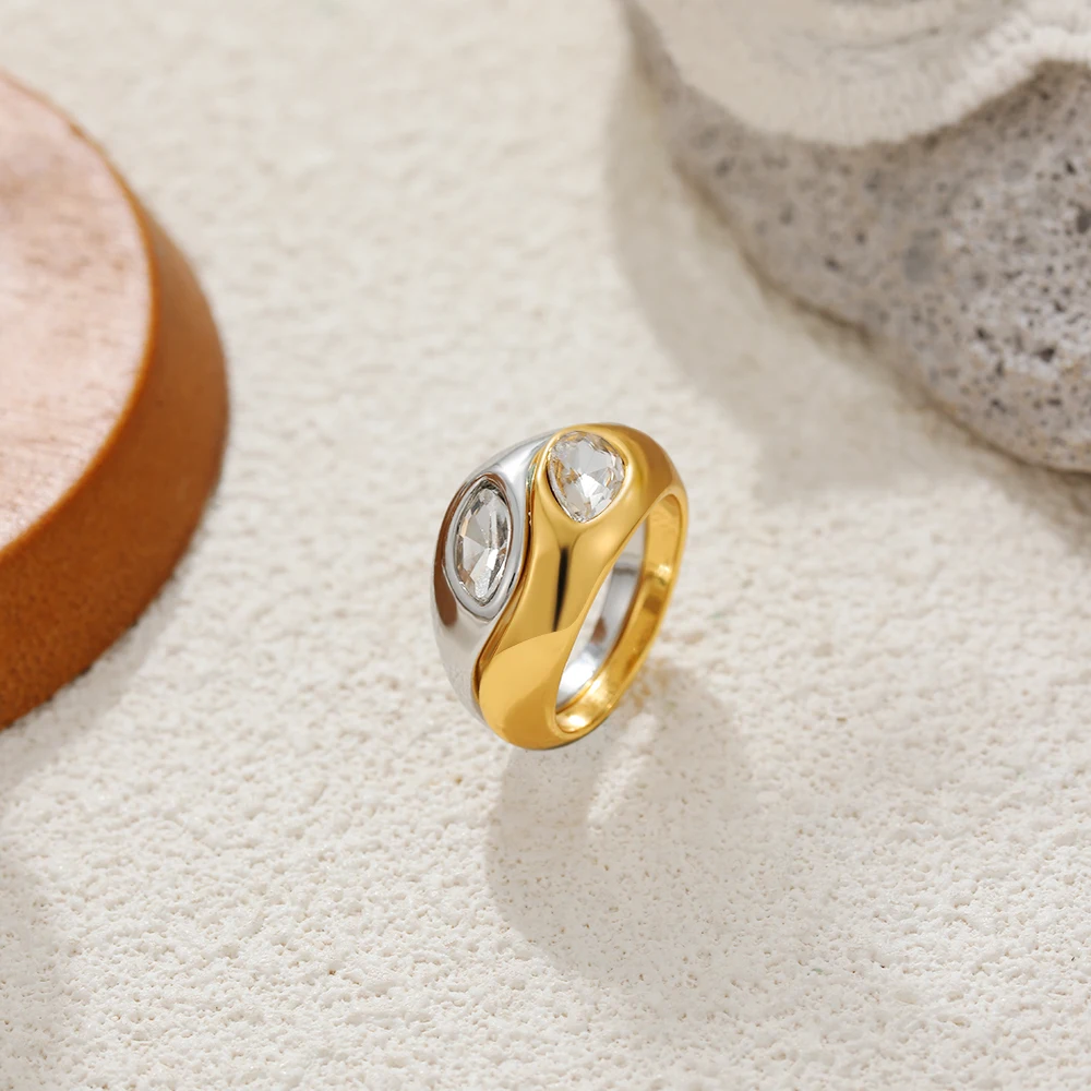 Doyours – Anello bicolore in acciaio inox placcato oro 18K con zircone a goccia d’acqua