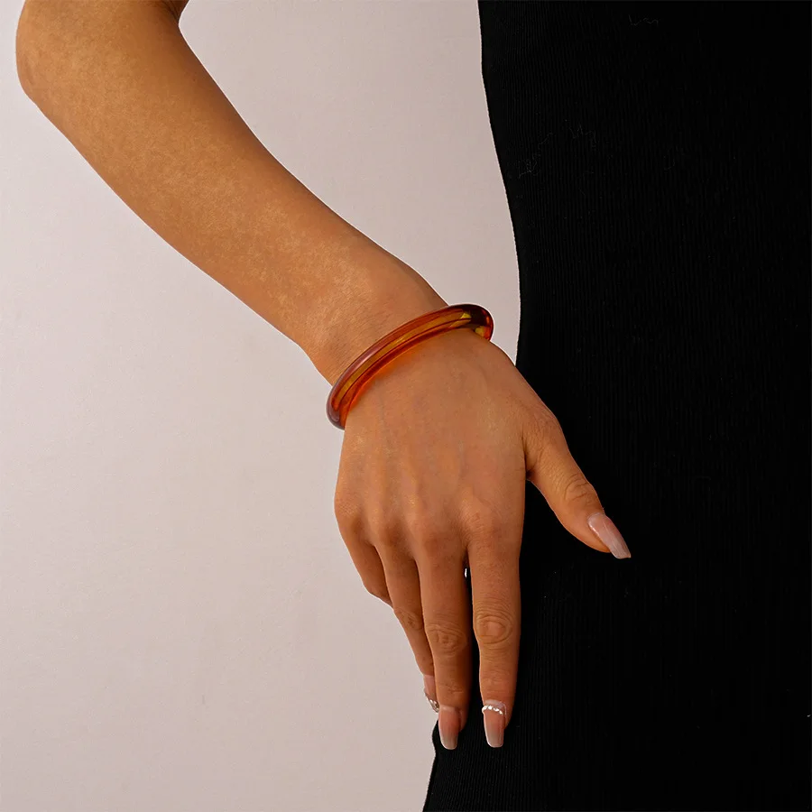Un accessorio vivace e moderno che aggiunge colore e personalità al tuo look. Questo bracciale aperto in acrilico, disponibile in tonalità rosso, verde, rosa e bianco, è perfetto da indossare da solo o abbinato in combinazioni impilabili per uno stile trendy e originale.