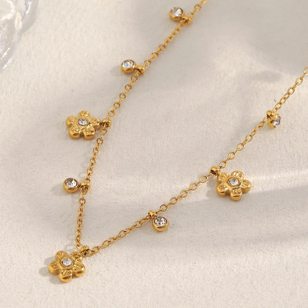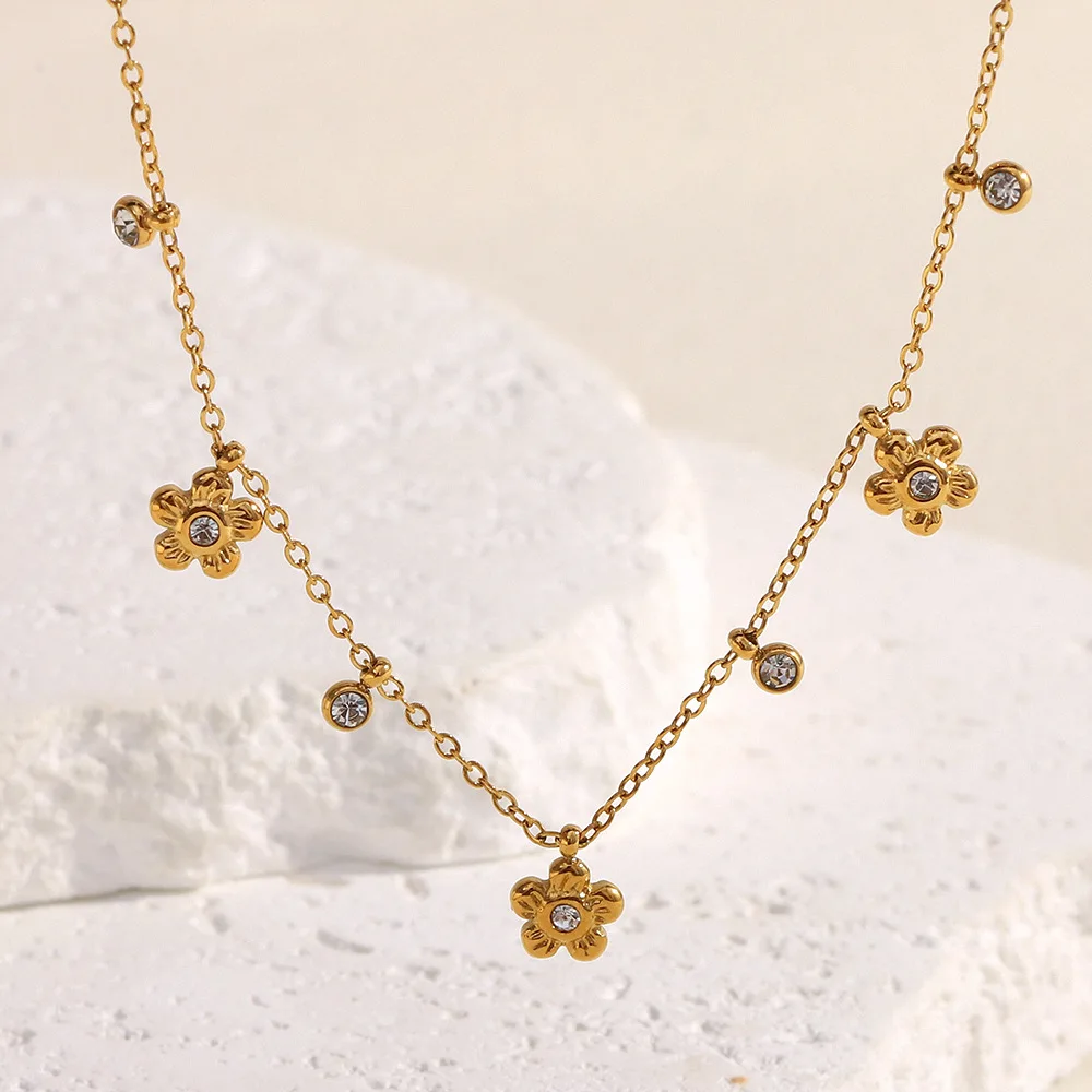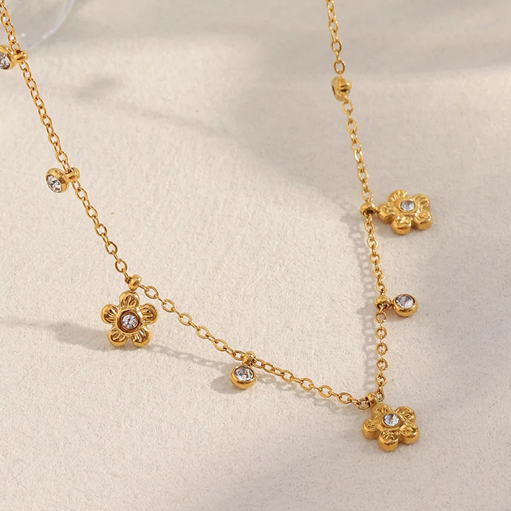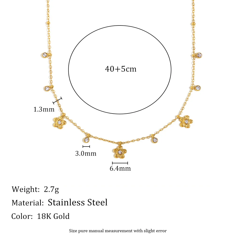 Doyours – Collana girocollo con fiori in zirconi cubici placcata oro 18K in acciaio inox