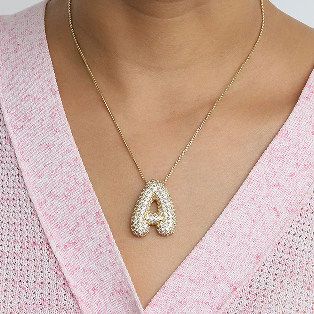 Ciondolo iniziale A-Z in stile Bubble, personalizzato e trendy