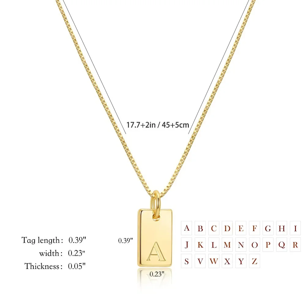Un accessorio minimal e sofisticato che porta con sé un tocco personale. Questa collana con ciondolo a targhetta quadrata e iniziale incisa è perfetta per chi ama gioielli eleganti ma dal design moderno.