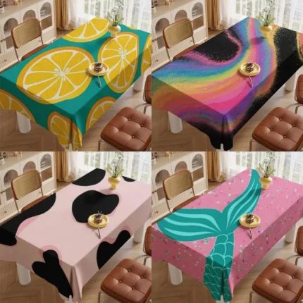 Stendi la tovaglia con il lato stampato visibile. Per una maggiore durata, lavare a mano in acqua fredda e lasciar asciugare all’aria. Evita lavaggi aggressivi o alte temperature.