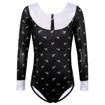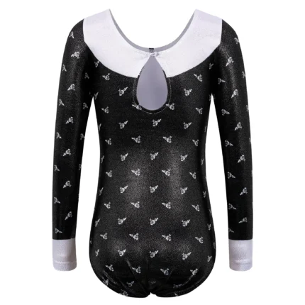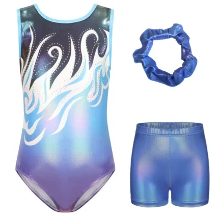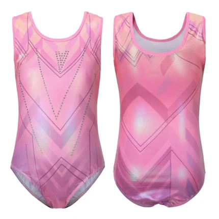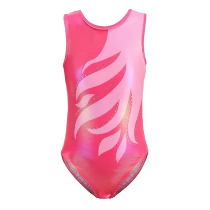 Il body ginnastica bambina scintillante è un costume intero ideale per allenamenti, saggi di danza e spettacoli teatrali. – Tessuto