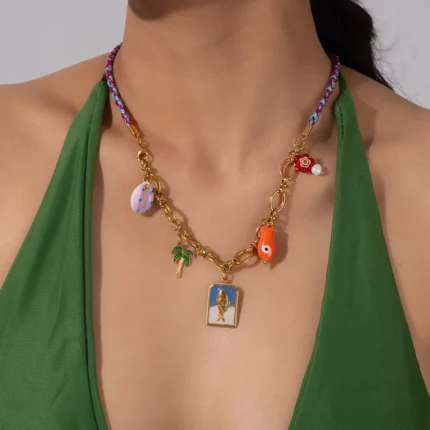 Doyours – Collana a corda intrecciata colorata con ciondoli marini in acciaio inox placcato oro